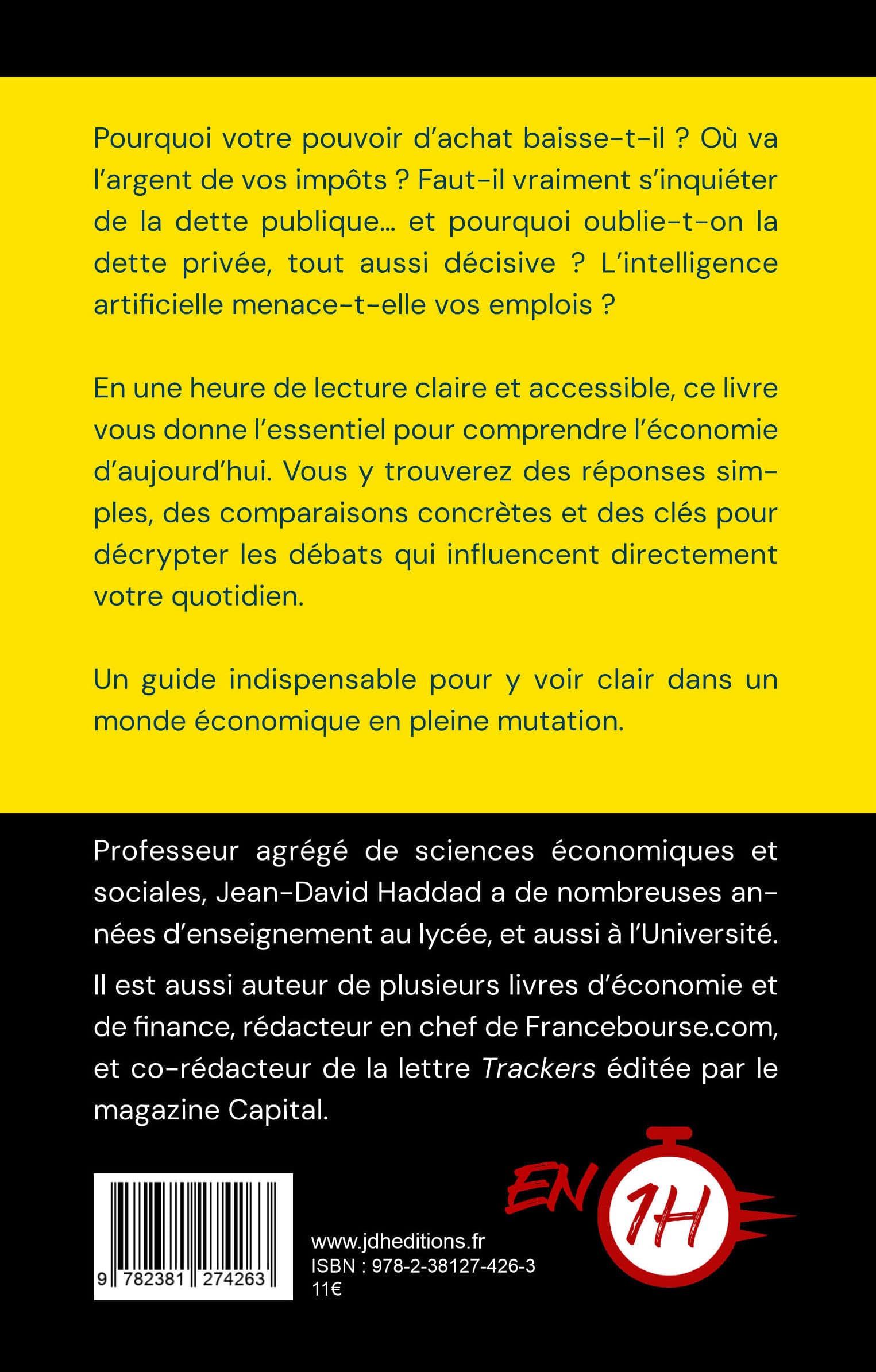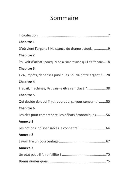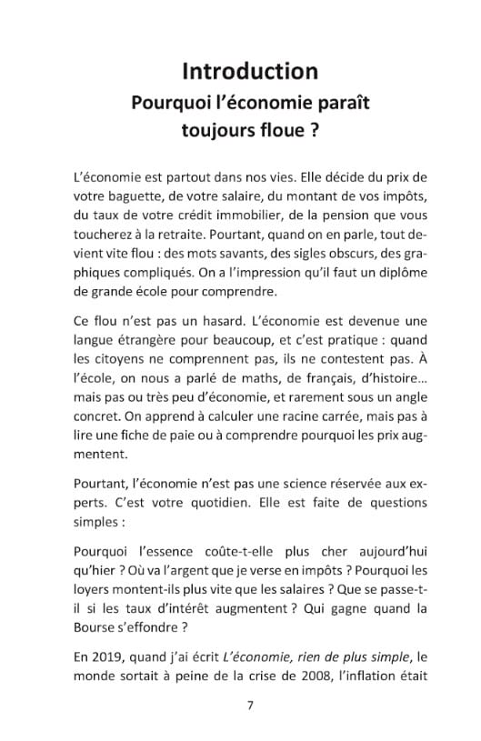L’ouvrage s’adresse à tous ceux qui veulent comprendre l’économie sans passer par des cours longs et complexes : citoyens curieux, étudiants à la recherche d’un résumé clair et vivant, mais aussi parents, salariés ou retraités qui souhaitent saisir les mécanismes qui impactent leur quotidien. En une heure de lecture, vous aurez l’essentiel pour comprendre l’économie d’aujourd’hui et ses enjeux réels : pouvoir d’achat, inflation, impôts, dette publique et privée, croissance, productivité, intelligence artificielle.